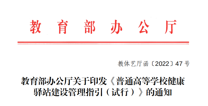 近日,教育部辦公廳印發(fā)了關(guān)于《普通高等學(xué)校健康驛站建設(shè)管理指引(試行)》的通知(以下簡(jiǎn)稱(chēng)《指引》),以此進(jìn)一步引導(dǎo)規(guī)范高等學(xué)校健康驛站建設(shè)。