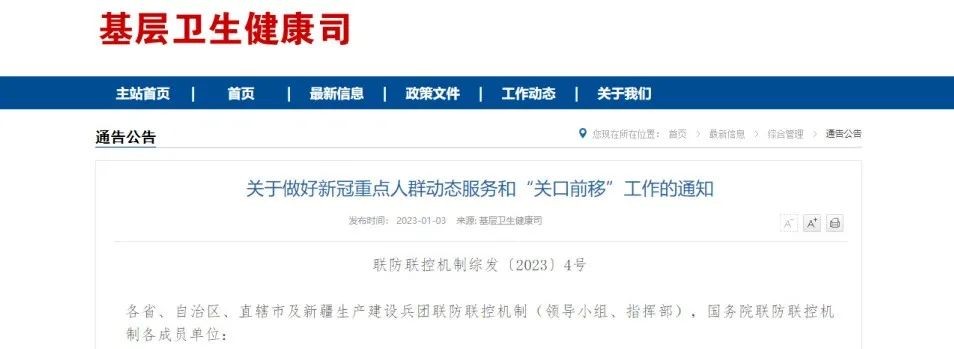 1月3日,國務院聯防聯控機制綜合組發布《關于做好新冠重點人群動態服務和“關口前移”工作的通知》其中,《通知》要求筑牢織密基層保健康防線。要按照服務人口15%-20%的標準為基層醫療衛生機構配齊配足新冠病毒感染對癥治療的中成藥、退熱藥、止咳藥及抗原檢測試劑盒配備,確保…