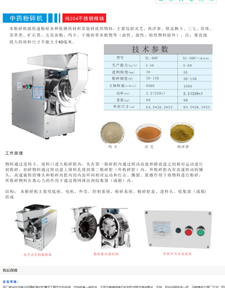 XL-60C大容量中藥粉碎機(jī)快速粉碎各種軟硬藥材,304不銹鋼