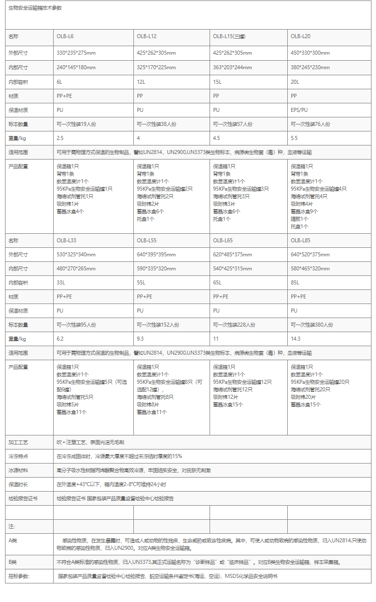 OLABO歐萊博生物安全運輸箱OLB-L15內部信息15升,三罐